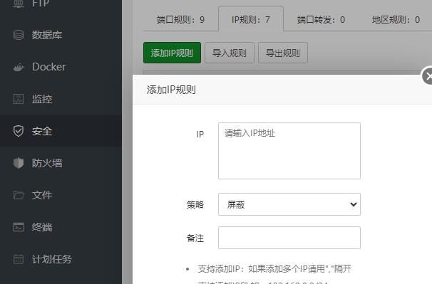 以宝塔为例,在安全 - 系统防火墙 - IP规则 - 添加IP规则 中添加你需要屏蔽的IP即可。󠄐󠄹󠅀󠄪󠄡󠄨󠄞󠄩󠄧󠄞󠄡󠄤󠄞󠄩󠄡󠄬󠅒󠅢󠄟󠄮󠄐󠅅󠄹󠄴󠄪󠄾󠅟󠅤󠄐󠄼󠅟󠅗󠅙󠅞󠄬󠅒󠅢󠄟󠄮󠅄󠅙󠅝󠅕󠄪󠄡󠄧󠄦󠄣󠄠󠄦󠄧󠄨󠄥󠄩󠄬󠅒󠅢󠄟󠄮