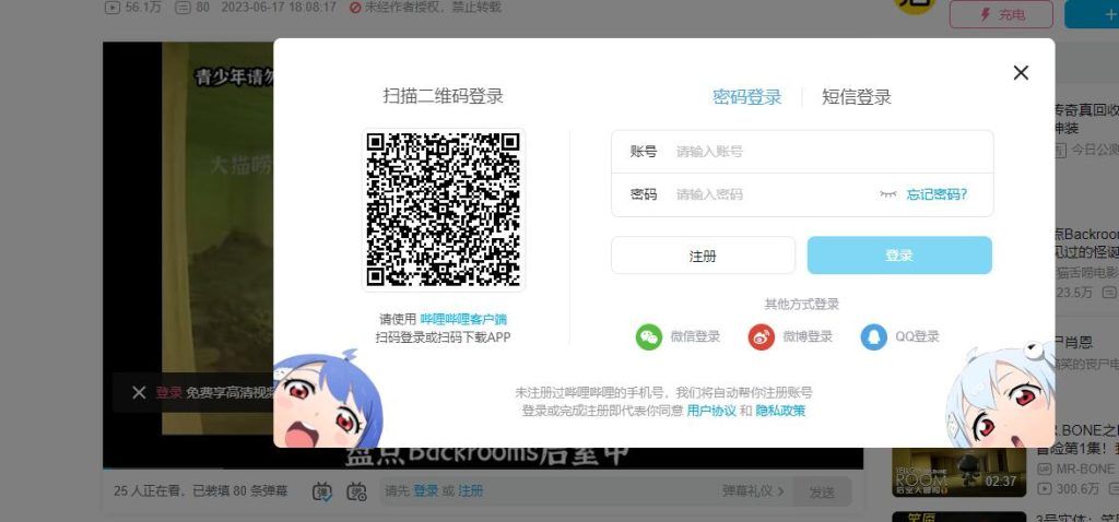 每次用网页版刷B站的时候,都会弹出登录窗叫你登录,但是登录是有失效的,过一段时间就又需要重新登录,否则就会在视频播放一分钟时弹出登录窗口并暂停!大大影响了刷视频的心情!