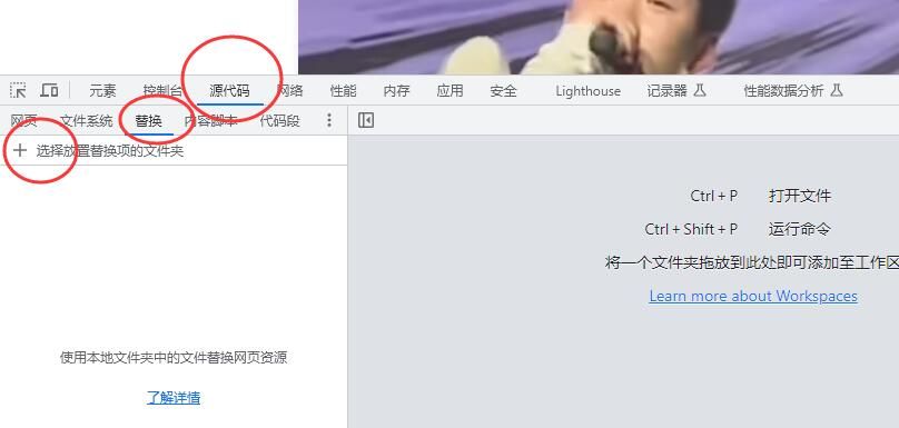 点击F12打开控制台 依次点击:源代码 - 替换 - 点击【+】,并随便选择一个文件夹