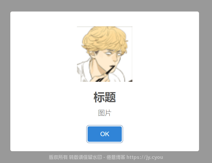| imageUrl | 为模态对话框自定义图片。指向一幅图片的URL地址。 | |