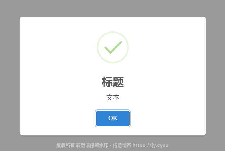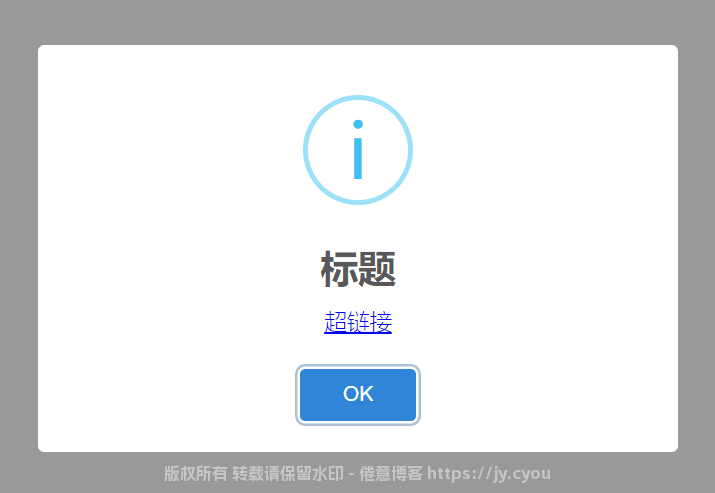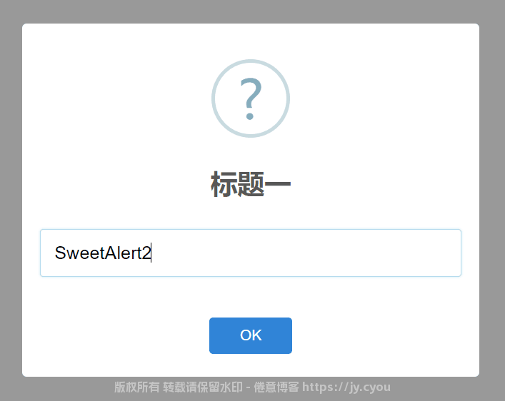 | swal.clickConfirm() | 以编程的方式点击确认按钮。 |