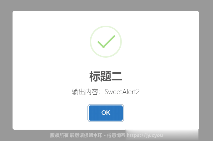 SweetAlert2是一款功能强大的纯Js模态消息对话框插件。SweetAlert2用于替代浏览器默认的弹出对话框,它提供各种参数和方法,支持嵌入图片,背景,HTML标签等,并提供5种内置的情景类,功能非常强大。