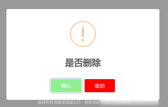 | buttonsStyling | true | 为按钮添加默认的swal2样式。如果你想使用自己的按钮样式,可以将该参数设置为false。 |