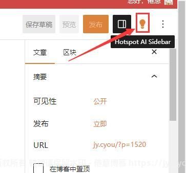 2.打开WP写文章界面,点击右上角的小灯泡