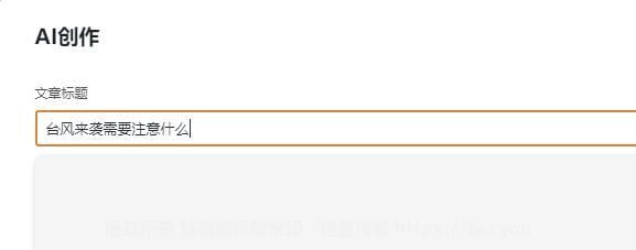 4.在标题内输入你想创作的主题,比如【台风来了要注意什么】,翻到最下面点击【开始构思】