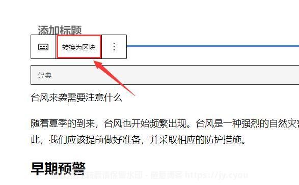 5.插入内容以后,别忘了点击【转换成区块】