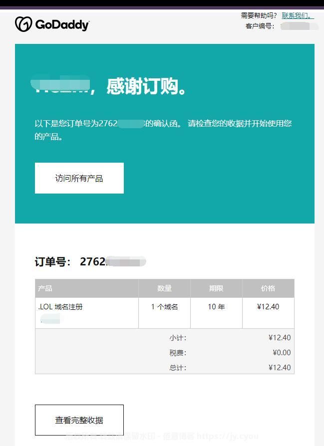 (PS:博主就注册了10年的域名,价格12.4元,但是至发布文章截至还未发货!)