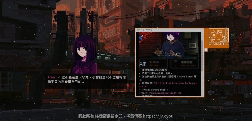 第一次看到这个界面的时候很惊讶,没想到HTML竟然能做出这么精美的发布页。包括随时间变化的背景和BGM,人物触发的动作和语音等等