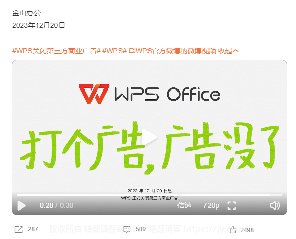 WPS官方微博在今日9点发文: