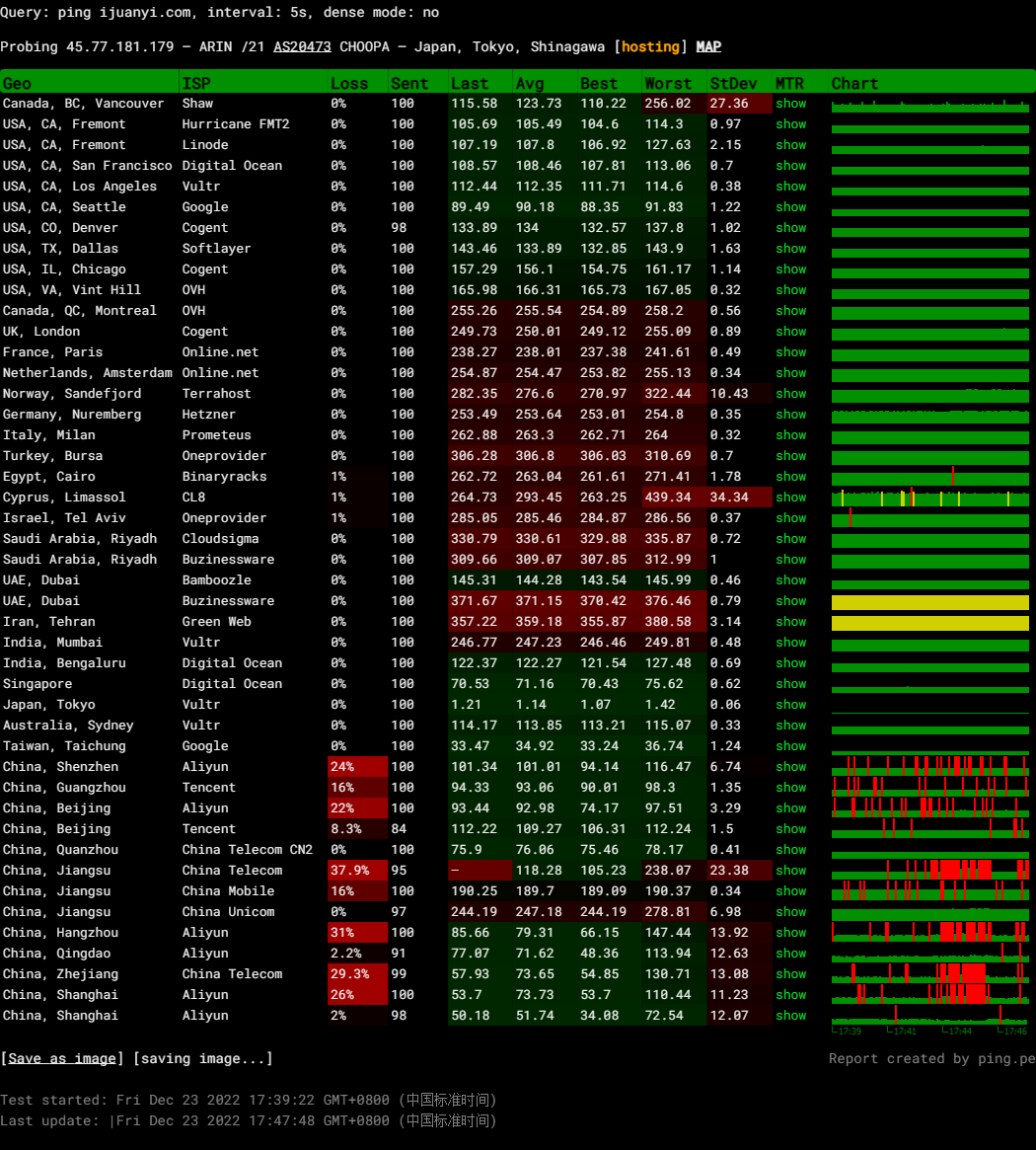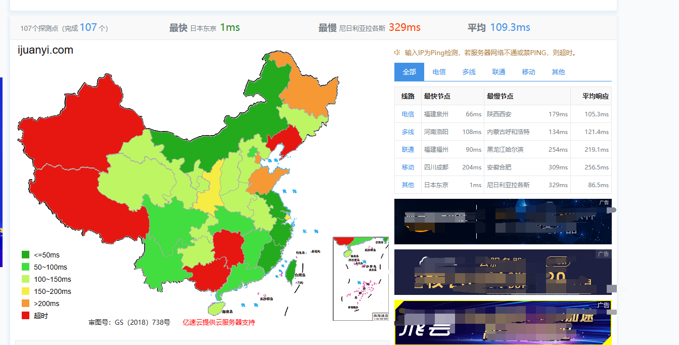 当然,看更多中国的节点,还可以用站长之家的工具来测: https://ping.chinaz.com/