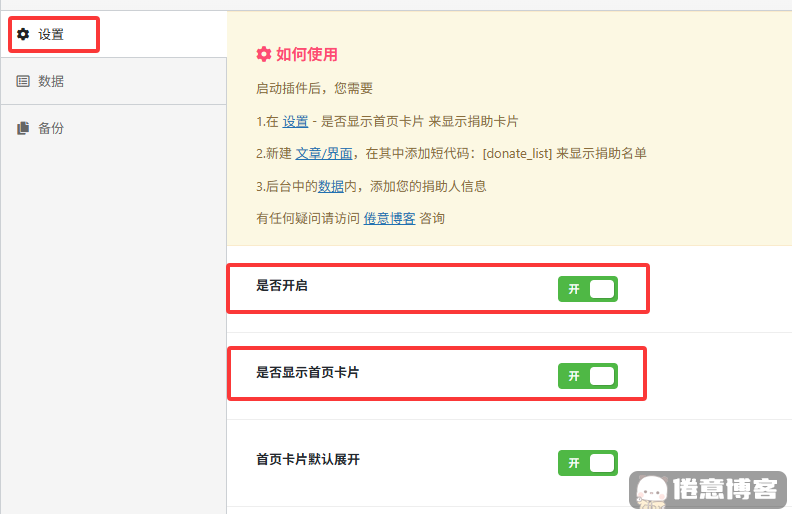 1.在 设置 - 是否显示首页卡片 来显示捐助卡片