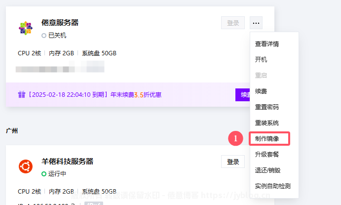 1.登录老服务器的轻量应用服务器控制台,选择左侧导航栏中的服务器,选择制作镜像