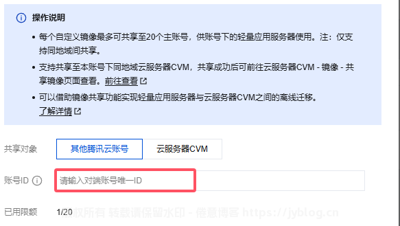 4.把新服务器的腾讯云账号ID输入进去(什么?你不知道账号ID在哪看?要不你把鼠标放在右上角的头像上看看?