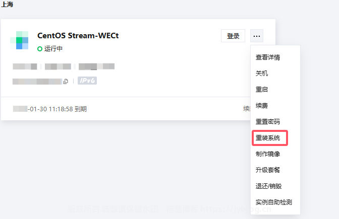 5.登录新服务器的腾讯云账号,点击重装系统。