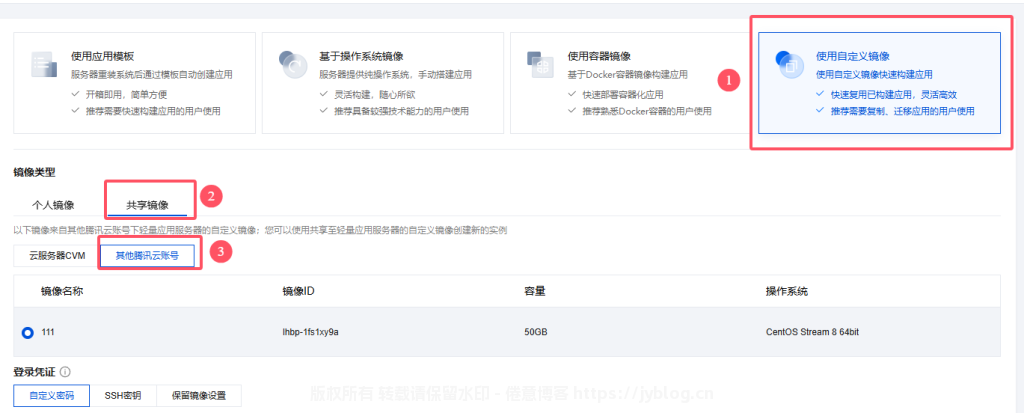6.选择自定义镜像 - 共享镜像 - 其他腾讯云账号,即可!