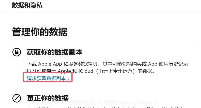 1.登录iCloud数据与隐私 >> 获取你的数据副本 >> 请求获取数据副本