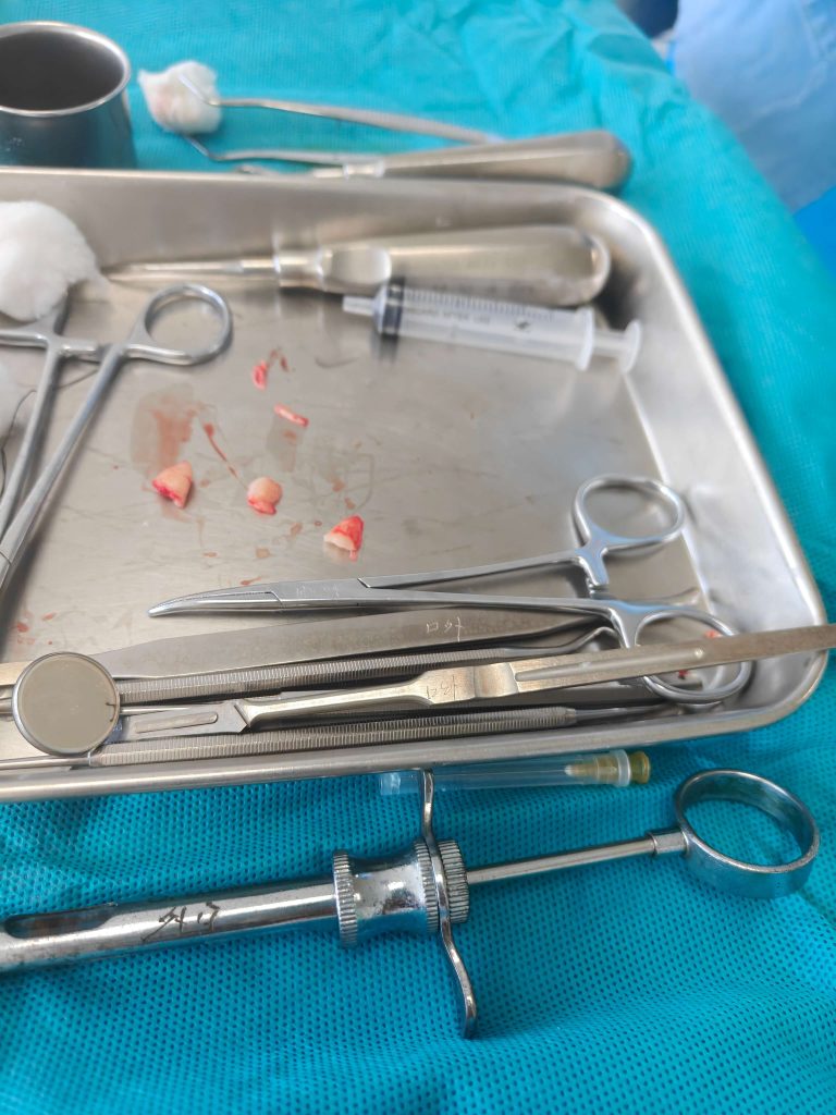走的时候梁医生告诉我他把我的牙切成了好几份取出来,问我要不要拍照。哈哈哈哈医生可能也是看多了病人拍照打卡了。我简单的拍了两张,跟两位医生说两句感谢的话就离开了。
