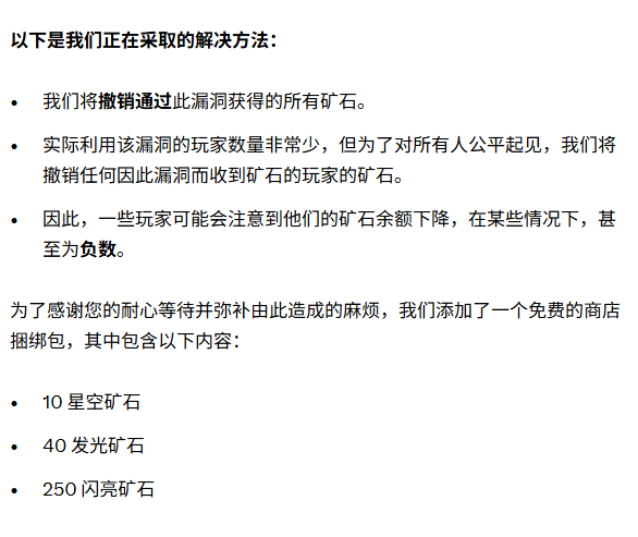 但是截至到发文时,这些通过Bug获得的资源官方并未进行回档,玩家也并未做出补偿。