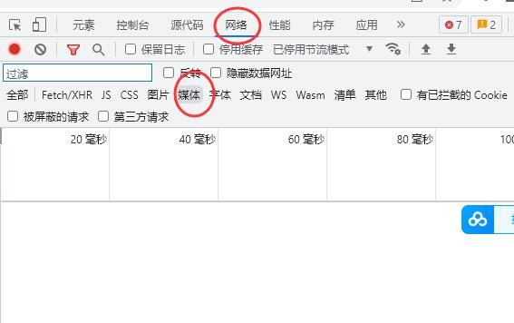 按F12打开控制台,选择网络(Network) - 媒体(Media)