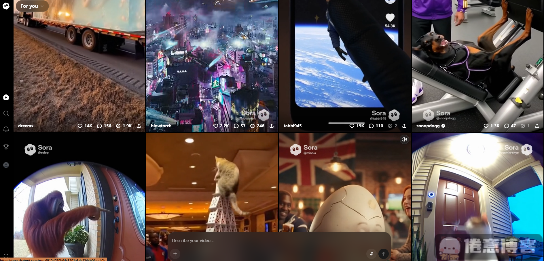 这个网页版就相当于抖音一样的短视频平台,不一样的是他这个平台只能发布使用Sora2生成的视频,感觉OpenAI有野心发展一个AI生成视频聚合平台。󠄐󠄹󠅀󠄪󠄢󠄡󠄦󠄞󠄧󠄣󠄞󠄢󠄡󠄦󠄞󠄩󠄦󠄬󠅒󠅢󠄟󠄮󠄐󠅅󠄹󠄴󠄪󠄾󠅟󠅤󠄐󠄼󠅟󠅗󠅙󠅞󠄬󠅒󠅢󠄟󠄮󠅄󠅙󠅝󠅕󠄪󠄡󠄧󠄦󠄢󠄨󠄤󠄥󠄥󠄧󠄠󠄬󠅒󠅢󠄟󠄮