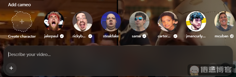 如果你需要添加一个人物在你的视频内,你可以在输入框上方勾选上方的Add Cameo