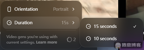 免费用户只能生成10秒视频,如果你想勾选15秒的视频,则提示需要付费