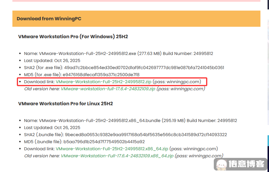 打开以上网页,往下翻到 Download from WinningPC 找到 Download link 后面的 VMare-Workstation 即可快速下载