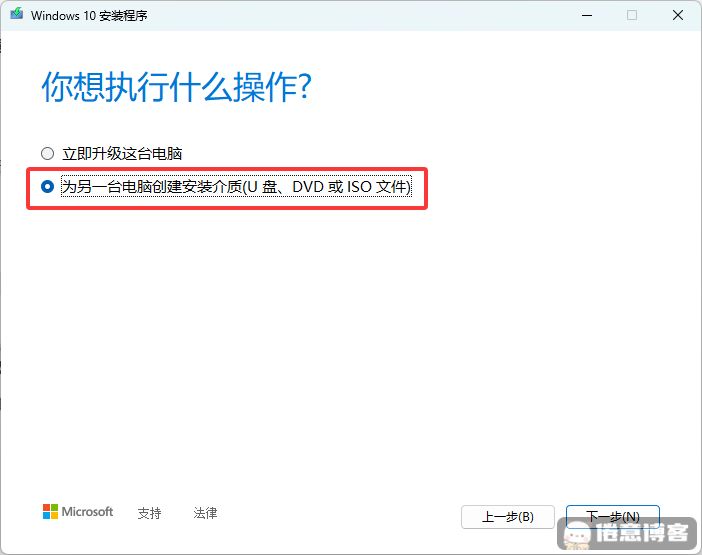 选择【为另一台电脑创建安装介质】